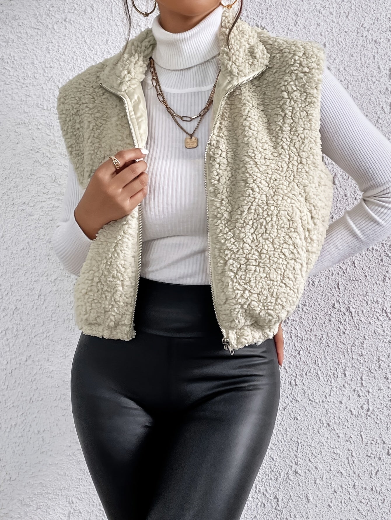 Ayla - Gilet Sans Manches Femme en Mouton Doux pour un Style Confortable et Tendance. Le gilet Ayla est la pièce parfaite pour ajouter une touche de chaleur et de style à vos tenues. Conçu en matière imitation mouton ultra-douce, ce gilet sans manches combine confort et tendance. Idéal pour la mi-saison ou pour superposer sur vos tenues hivernales, il s’adapte à toutes les occasions, des sorties décontractées aux looks plus habillés.
