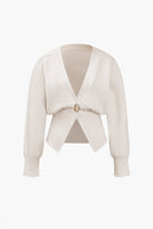 Clorinda - Cardigan avec Détail Bijou pour une Élégance Subtile. Le cardigan Clorinda est la pièce parfaite pour ajouter une touche d'élégance et de raffinement à votre garde-robe. Conçu en maille douce et confortable, il est sublimé par des détails bijou délicats qui en font un vêtement aussi chic que polyvalent. Idéal pour rehausser une tenue casual ou compléter un look habillé, ce cardigan combine confort et sophistication.