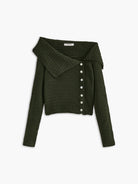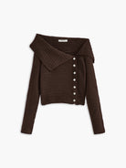 Estelle – Pull tricoté avec col asymétrique et boutons élégants