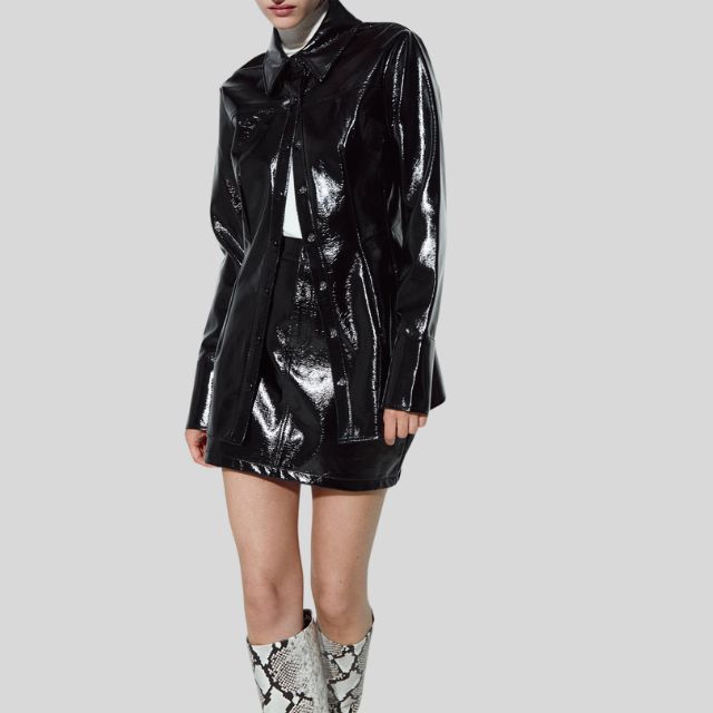 Irina – Blazer en Vinyle noir, Audacieux et Tendance