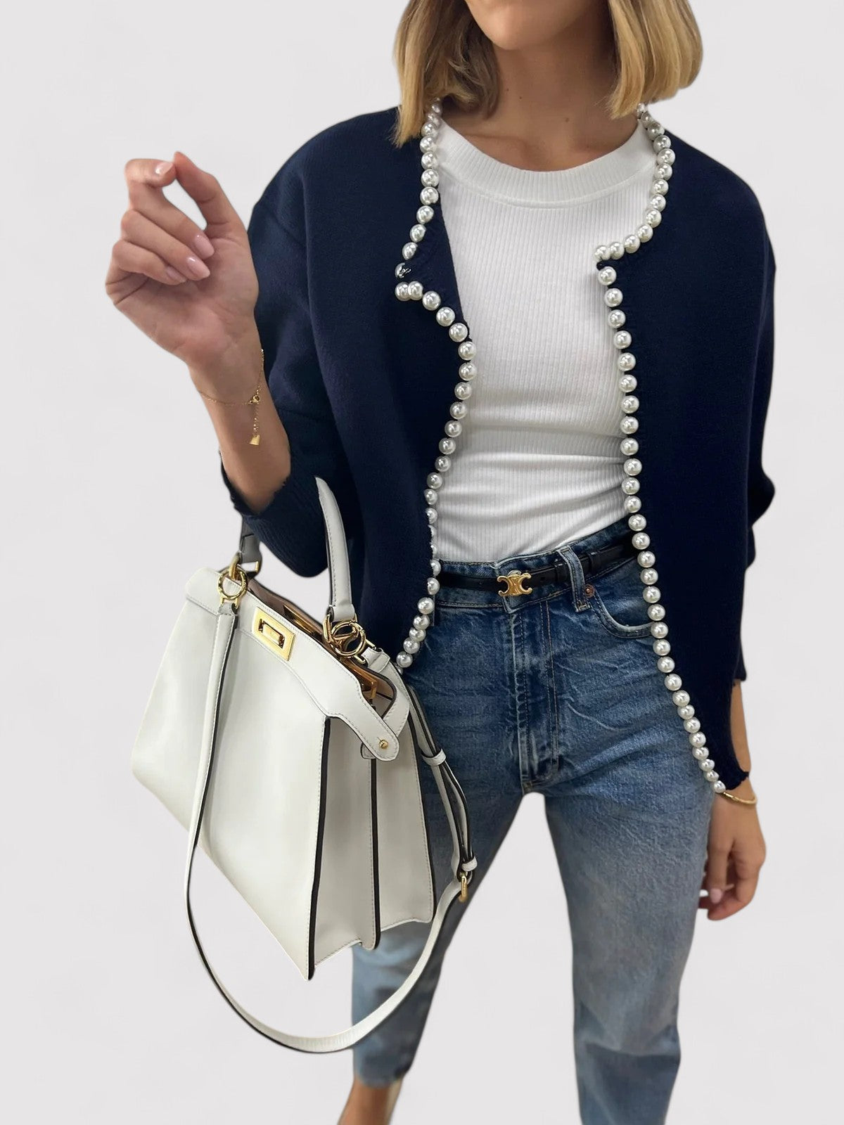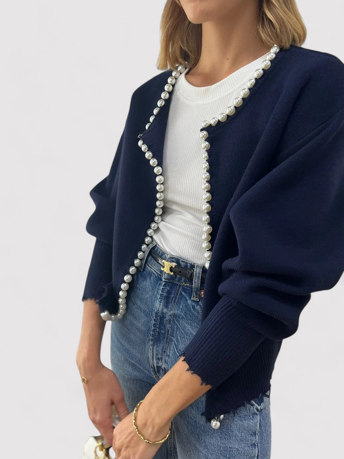 Jenifer – Cardigan chic avec Perles Elégantes et coupe Décontractée
