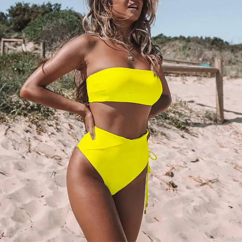 Lina – Bikini bandeau minimaliste, élégant et taille haute