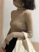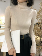 Lina - Pull col Roulé Côtelé doux et Ajusté