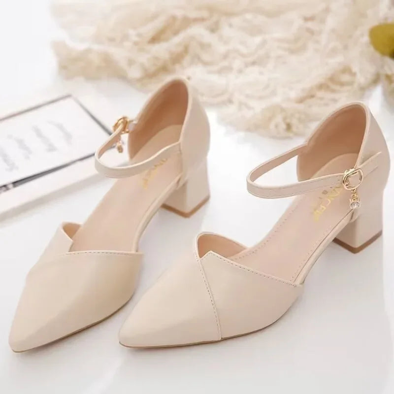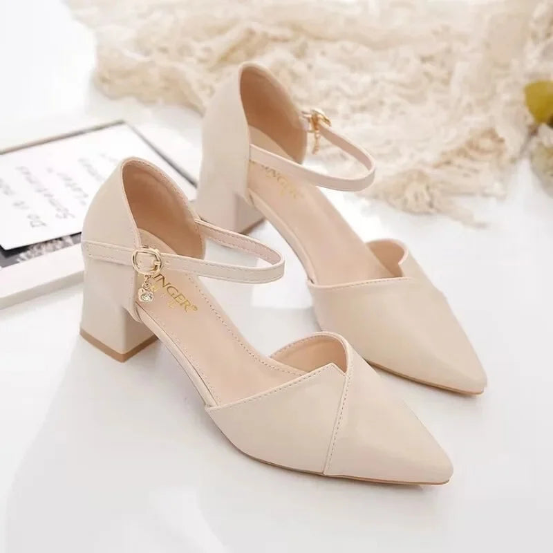 Selena - Escarpins élégants à talons blocs, bride cheville et bout pointu
