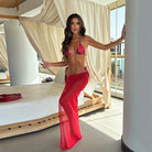 Élégant et tendance, l’ensemble Vera allie sensualité et raffinement avec son bikini assorti à une jupe en maille légère. Ses anneaux dorés apportent une touche sophistiquée, idéale pour un look chic et glamour sous le soleil.